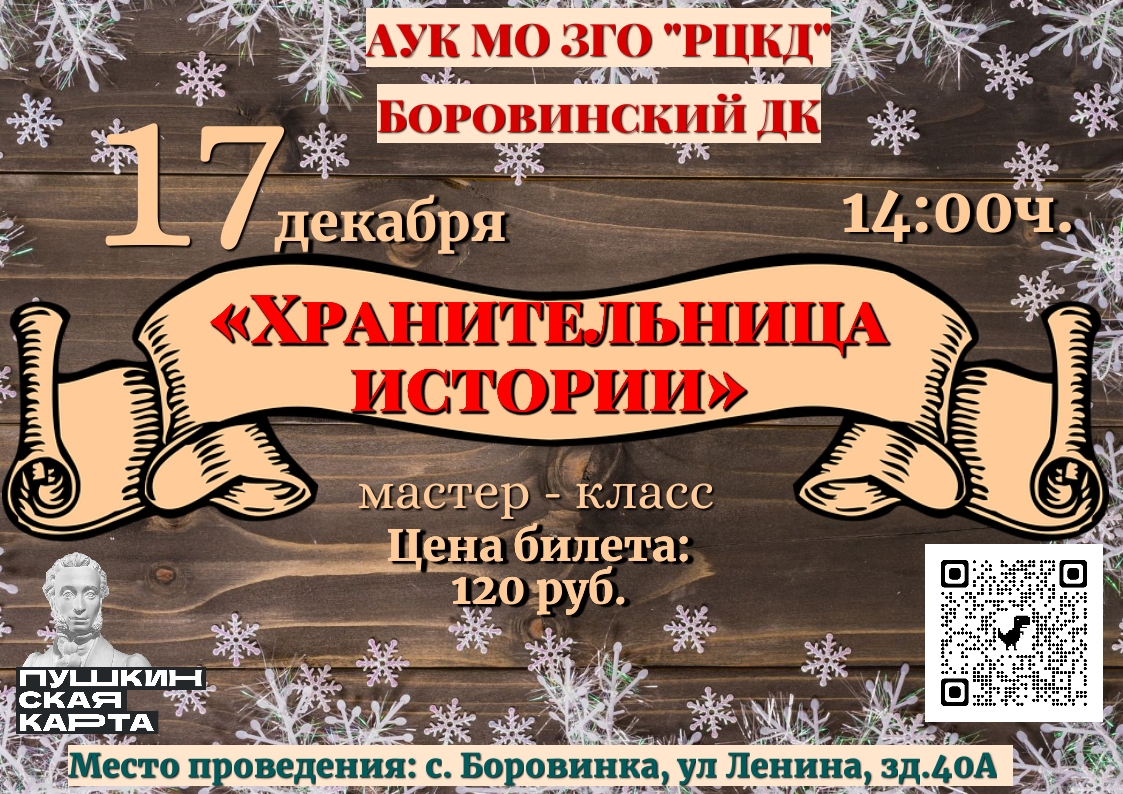 Билеты на мастер - класс можно приобрести в Боровинском ДК или по ссылке в описании, в том числе по Пушкинской карте.